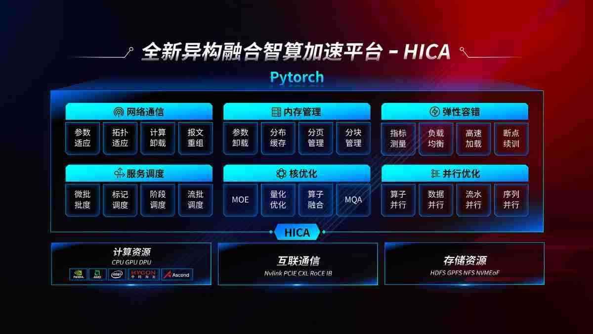 通过自研的服务层、、、中间适配层、、以及调度编排算法,,,,采用数据并行、、模型并行等多种并行方式,,,把并行计算任务进行有效的分解,,,使其分别由相应的软件栈和算力资源来承接。。。。当GPU资源变化,,,HICA可以实时动态调度计算子任务并调整模型拓扑和架构,,,,以充分聚合各种算力资源。。。