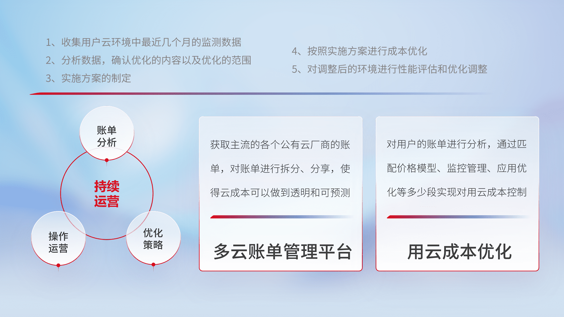 监控业务系统资源开销,,对资源的消耗精确计量,,实现费用的透明化管理,,不断提升资源使用率,,,调整资源购买方式,,,,降低资源费用成本,,用云成本可预测、、、、用云费用可优化,,,,云资源配额有据可依。。。